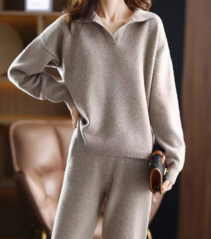 Groothandel Custom Populaire Mode Over Maat Dames Trui Wollen Kasjmier Gebreide Broek En Trui Tweedelige Set Populair